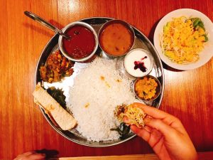 突然の流れで、ネパールの正式な食べ方を体験するため、